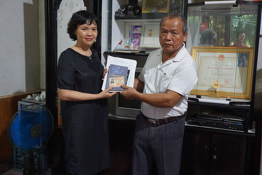 Nhà báo Chu Sĩ Liên, nguyên Chủ tịch HNB Cao Bằng hiến tặng hiện vật cho Bảo tàng Báo chí Việt Nam.