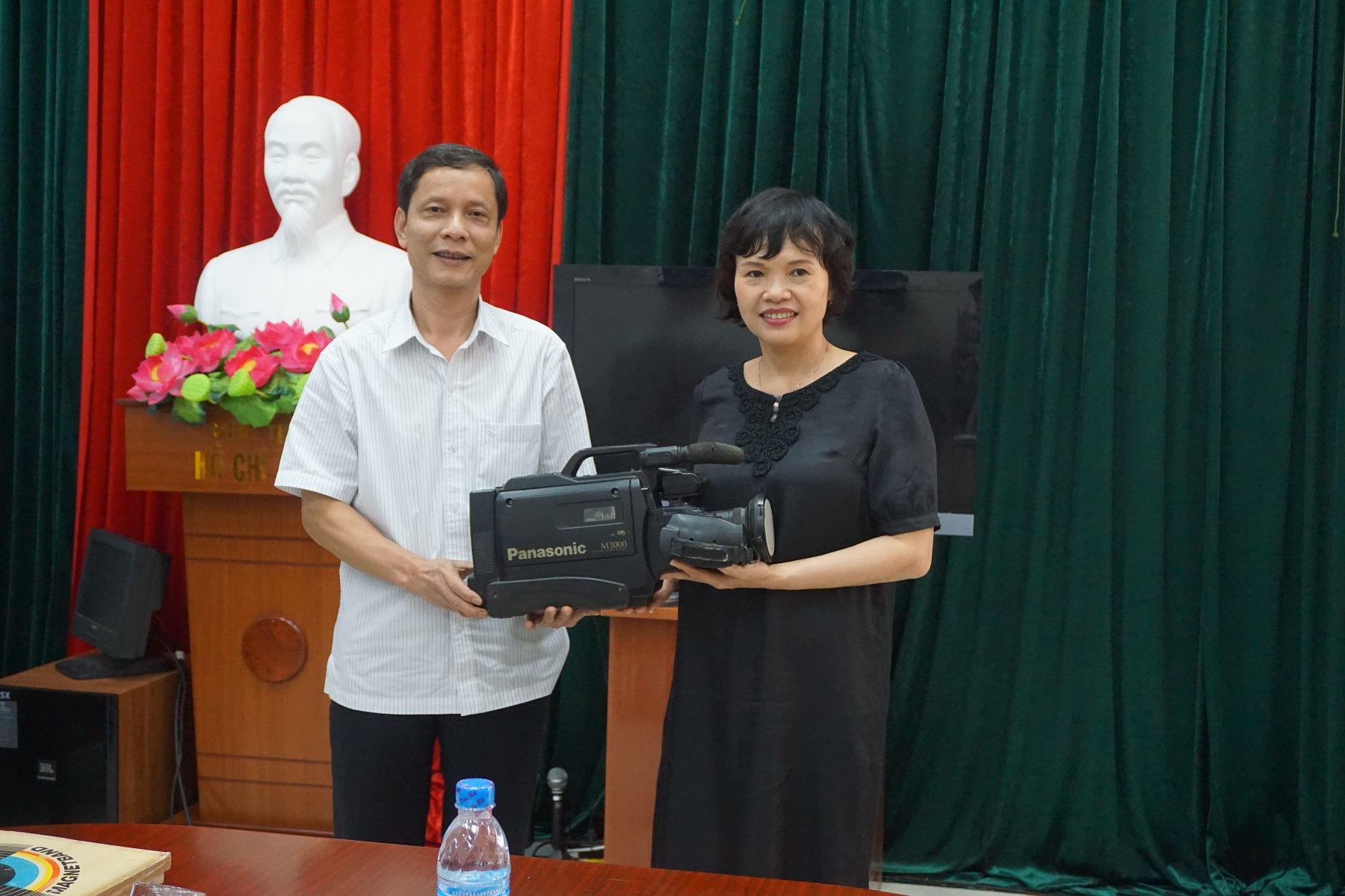 Nhà báo La Ngọc Nhung, Phó Chủ tịch Thường trực HNB Lạng Sơn trao tặng máy phóng ảnh cho Bảo tàng Báo chí Việt Nam.