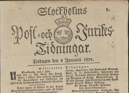 Một ấn bản của tờ Post-och Inrikes Tidningar. Post-och Inrikes Tidningar (PoIT - có nghĩa là thư tín và tin trong nước) ra đời năm 1645 từ ý tưởng của Nữ hoàng Thụy Điển Christina (1626 – 1689) và Thủ tướng Thụy Điển Axel Oxenstierna muốn có một