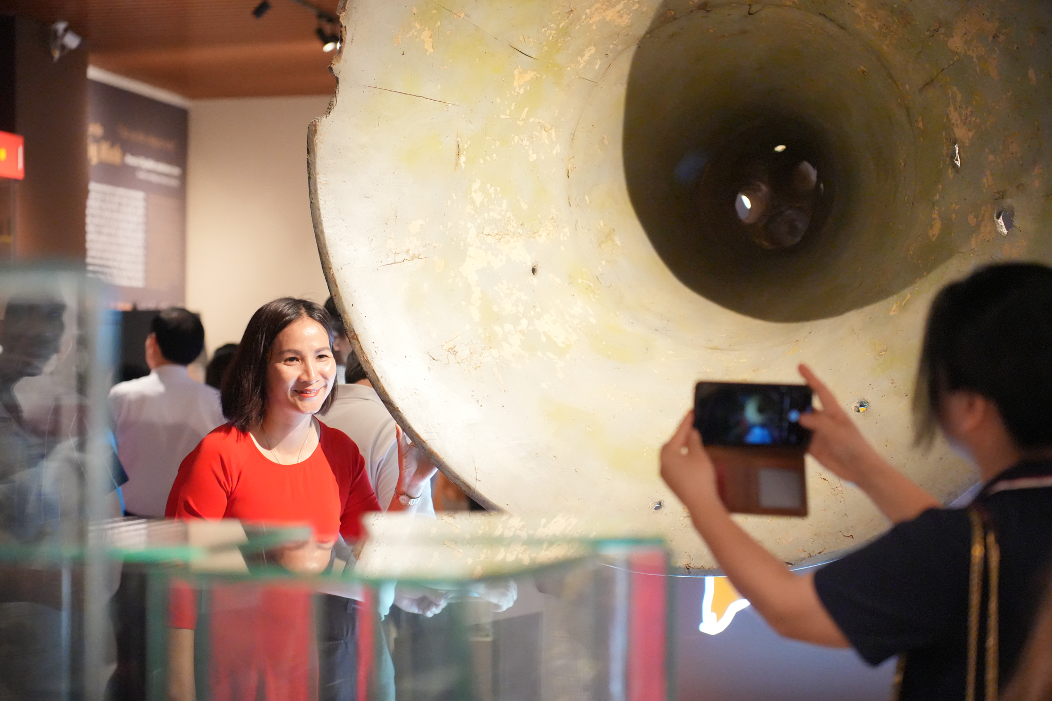 "Điểm nhấn đặc biệt trong không gian trưng bày của Bảo tàng chính là khu tưởng niệm các nhà báo - liệt sĩ, nơi chúng ta trân trọng, tri ân và tưởng nhớ những cây bút dũng cảm đã không tiếc máu xương, chẳng quản ngại hi sinh để dấn thân và cống hiến, góp phần tạo nên nền tảng vững chắc, tự hào cho sự phát triển của nền báo chí dân tộc. Khu tưởng niệm được thiết kế với các vách kính ghép lại với nhau cùng tông màu đỏ chủ đạo, có khắc tên và cơ quan của các nhà báo liệt sĩ từ trước năm 1945 đến nay", bà Trần Thị Kim Hoa xúc động chia sẻ.