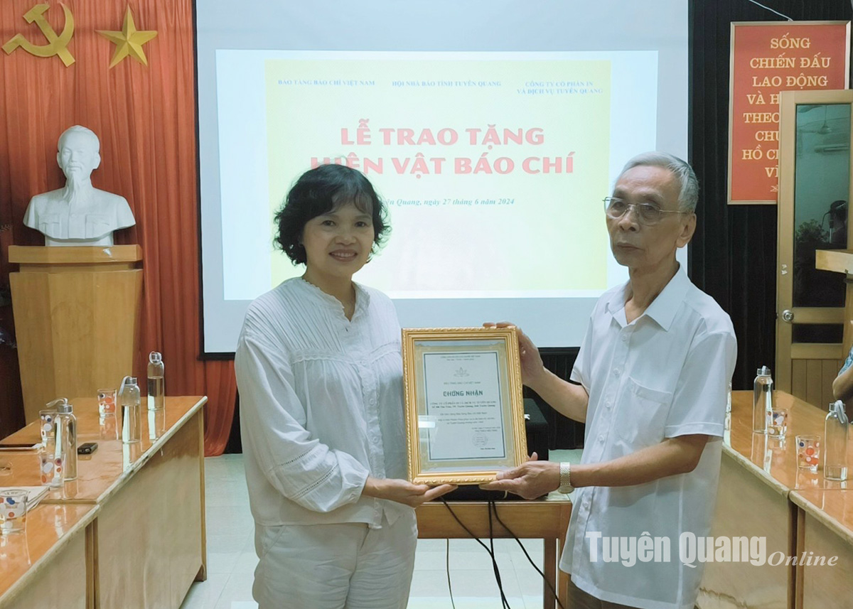 Bảo tàng Báo chí Việt Nam phối hợp với Hội Nhà báo tỉnh Tuyên Quang và Công ty Cổ phần in và Dịch vụ Tuyên Quang tổ chức “Lễ trao tặng hiện vật báo chí”. Đây là hoạt động hướng đến kỷ niệm 100 năm Ngày Báo chí Cách mạng Việt Nam (21/6/1925-21/6/2025) và thực hiện kế hoạch tôn vinh Báo chí kháng chiến ở Chiến khu Việt Bắc (1946-1954).