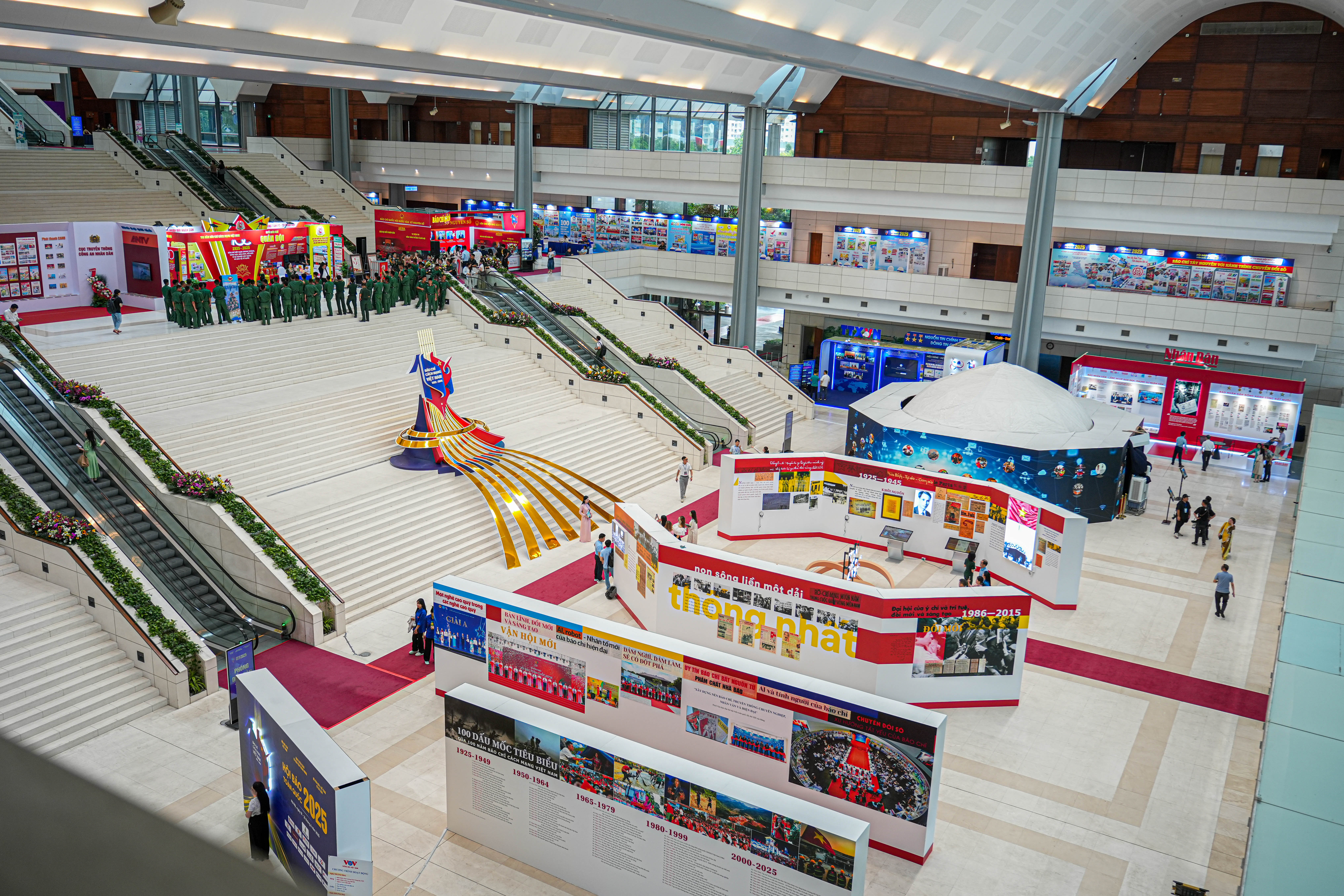 Không gian trưng bày “100 năm Báo chí Cách mạng Việt Nam (1925–2025)” do Bảo tàng Báo chí Việt Nam thực hiện thu hút sự quan tâm đặc biệt của đông đảo đại biểu, nhà báo, sinh viên và công chúng. Hoạt động này nằm trong khuôn khổ Hội Báo toàn quốc 2025, diễn ra từ ngày 19-21/6/2025 tại Trung tâm Hội nghị Quốc gia.