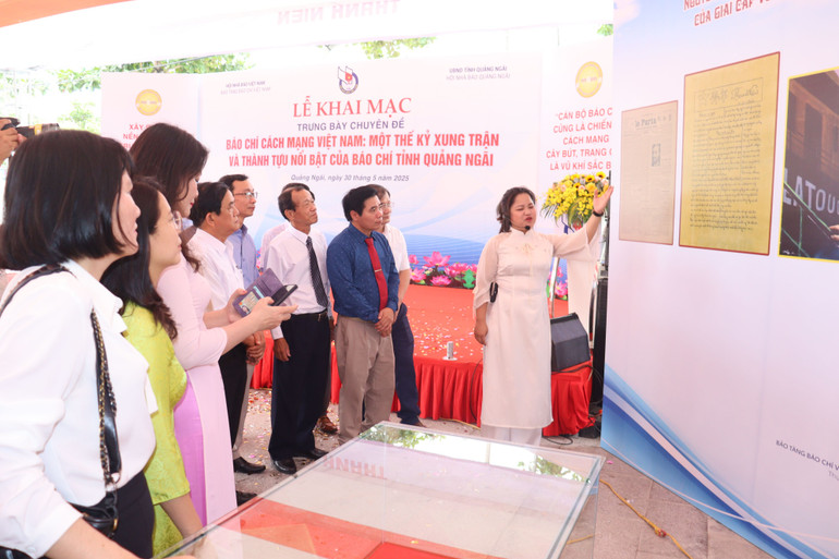 Trưng bày chuyên đề "Báo chí cách mạng Việt Nam - Một thế kỷ xung trận và thành tựu nổi bật của báo chí tỉnh Quảng Ngãi" do Hội Nhà báo Quảng Ngãi phối hợp Bảo tàng Báo chí Việt Nam tổ chức tại Thành phố Quảng Ngãi, ngày 30/5/2025.